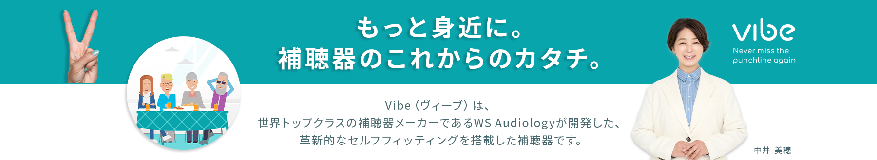 スマホ調整も簡単で、驚くほどよく聞こえます。初めての補聴器にVibeを選んで本当によかったです。
